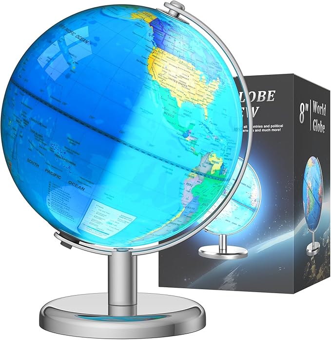 - 👦Designed for Ages 4-8: This 8 inch kids globe light combines child-safe durability (drop-proof & scratch-resistant) with portable convenience. Premium laminated HD mapping stays vibrant through years of exploration