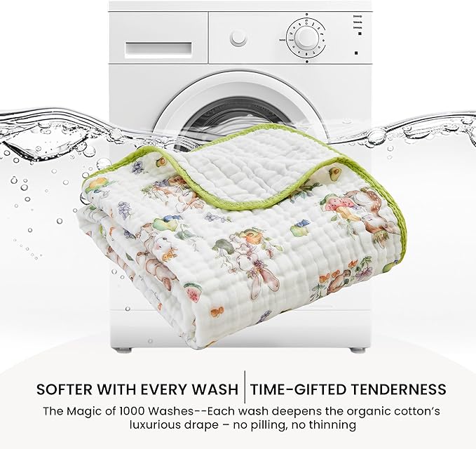 - The Magic of 1000 Washes: Softer With Every Wash|Time-Gifted Tenderness. Each wash deepens the organic cotton’s luxurious drape – no pilling, no thinning. After years of testing, toddlers still cling to their "blankie" as the hypoallergenic fibers grow impossibly softer. This is the living chronicle of first steps, park picnics, and bedtime stories told in cozy folds