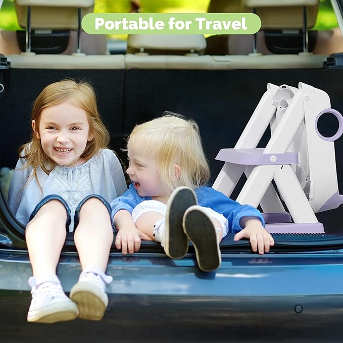 - 2-in-1 Usage : Our multifunctional toilet seat can be used as a step stool for children to reach higher places in addition to being a training toilet ladder. It is convenient for your kids to wash their hands or take things. The product is light and convenient for children to carry by themselves, and the foldable design makes it easy to store.
