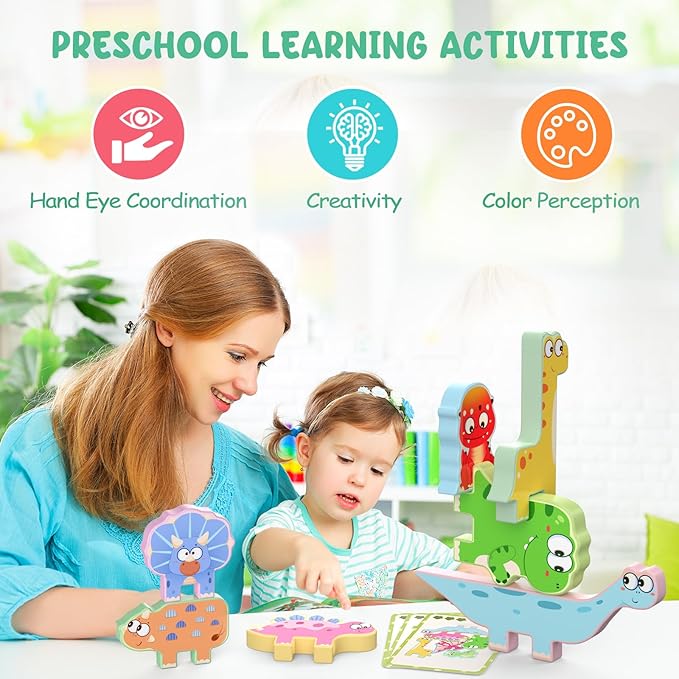 - 🦖【Dinosaur Toys for Toddlers】Zeoddler Wooden Stacking Blocks are the PERFECT CHOICE for you and your toddlers as it is made from natural wood, printed with well designed. This montessori toys is suitable for toddlers and represents the perfect activity to learn through play!