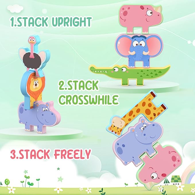 - 🎁【Awesome Gift for Kids】🎁Our animal stacking blocks are the top toys gifts for toddlers suitable for any situation, such as birthday gifts, Easter gifts, holiday presents and daily toys. Don't miss any chance to surprised your kids.