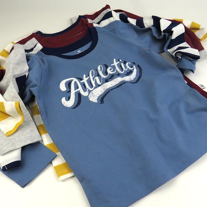 HonestBaby 5-Pack Long Sleeve T Shirts 100% Organic Cotton for Toddler, Little Kids Boys, Girls