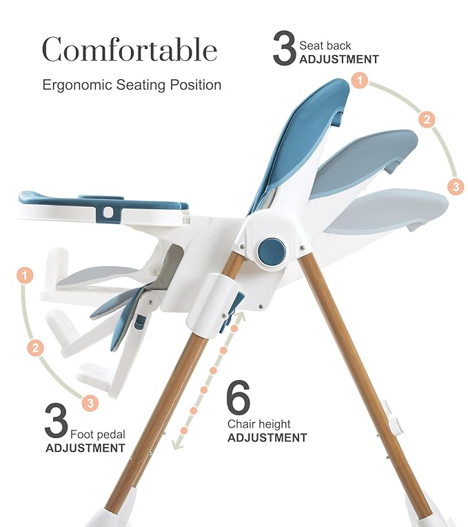 - GROWS WITH YOUR LITTLE ONE: From first feedings to toddler independence, this foldable high chair adapts to every stage. With 6 seat heights, 3 footrest positions, and 3 recline angles, it’s built to grow with your child. One-touch buttons make adjusting quick and hassle-free — comfort and function, all in one high chair