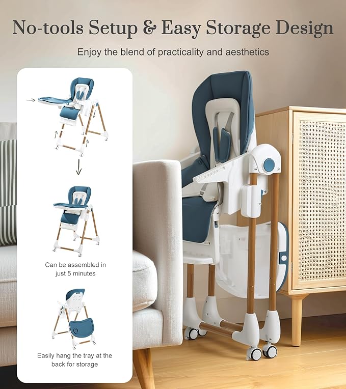 - QUICK ASSEMBLY & COMPACT DESIGN: Assemble in minutes — no extea tools needed. With a quick-fold design and a side buttons, making the foldable high chair collapse smooth and effortless, storing away in a snap. Perfect for small spaces, or everyday use. Thoughtfully designed to be a cherished part of your family’s everyday moments