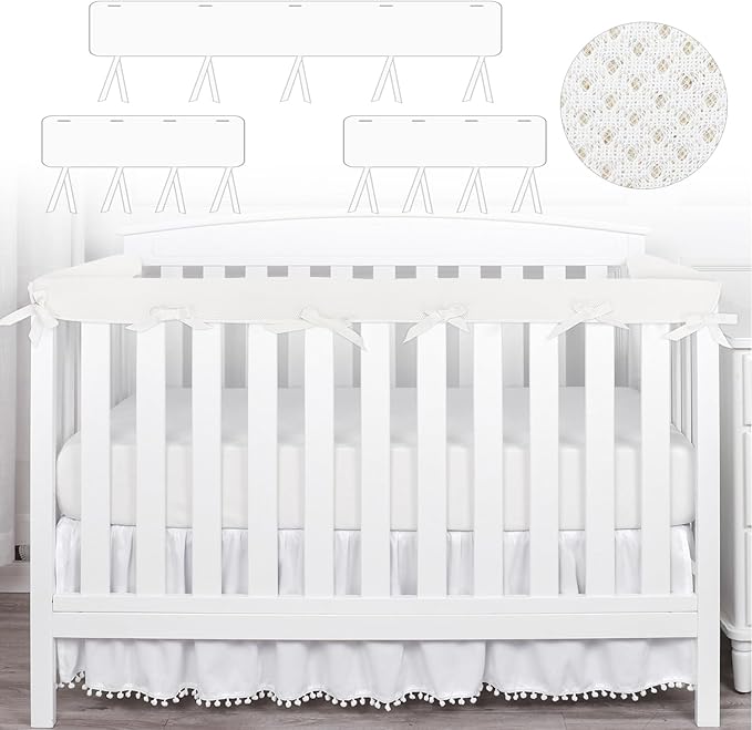 3 in 1 Crib Rail Covers for Teething,Soft Breathable Anti-Collision Crib Teething Rail Cover Edge Protector Strip(2025 New) (4pc-White)