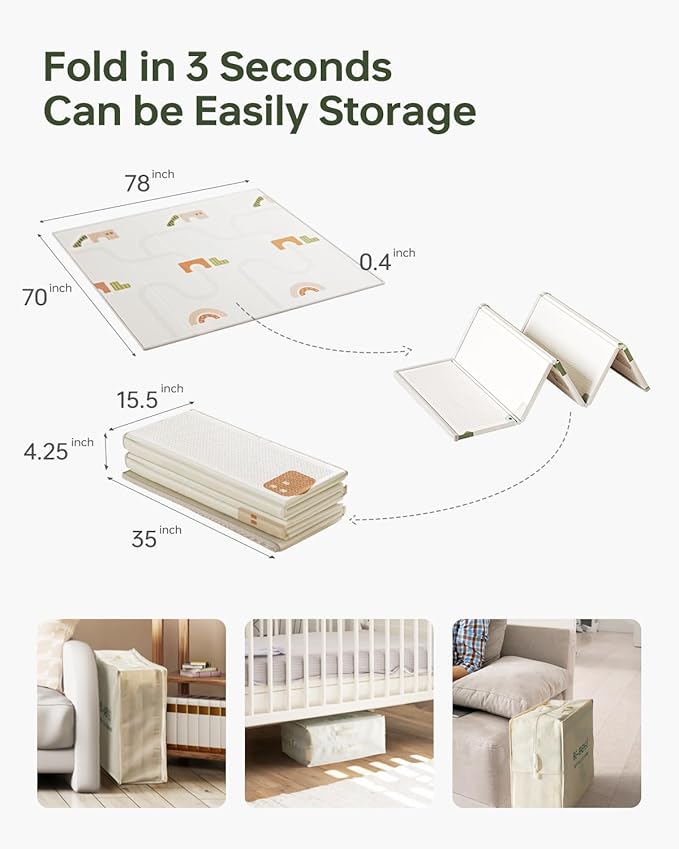 - [Foldable & Portable]: Our crawling mats are easy to fold and spread out, and easy to store and carry. So you can always take it outside to enjoy a pleasant outdoor time with your baby!
