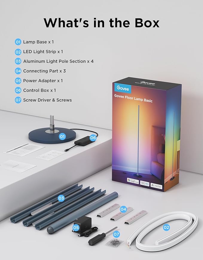 - Smart Control: Manage your LED floor lamp with simple voice commands via Alexa, Google Assistant. And Govee Home APP also makes it more convenient to enjoy multiple dynamic scenes like Cheerful, Romantic and design your living room or bedroom decorations.The official app download link is provided on the package in the form of QR code. Please make sure to download and use the genuine App for the full experience.