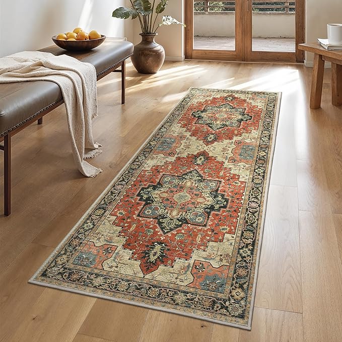 GENIMO 2x5 Runner Rugs for Hallway, Machine Washable Non Slip Vintage Rugs, Low Pile Lightweight Soft Print Rug for enrtyway, Corridor, Home Office, Kitchen,Desert Ember