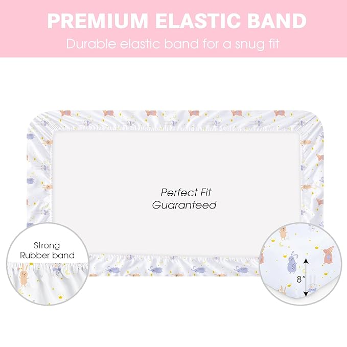 - Perfectly Fit: Measuring 52 by 28 inch,our crib sheets fit most standard crib mattress and toddler bed mattresses.Snug fit up to 8 inch thick mattress and elastic all around, perfect tight stretch for sleep safety.