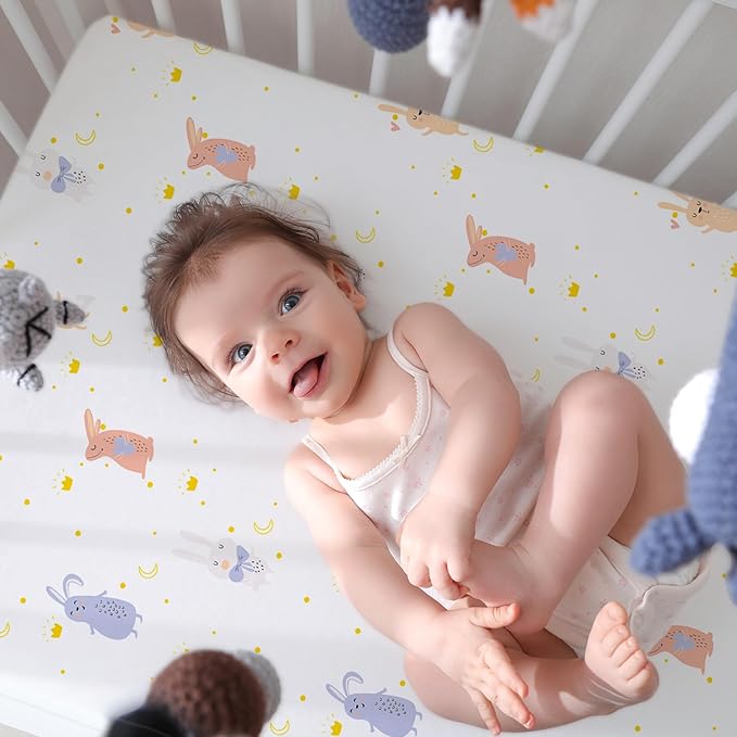 - Premium Fabric:The baby crib sheets are super soft, breathable and comfortable for any season!Made from 100% microfiber,these crib mattress sheet Tested for harmful substances according to Standard 100 by OEKO-TEX will provide a soft comfy place for child to sleep and play.