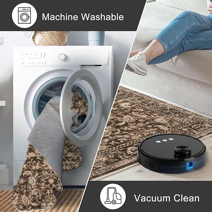 - Machine Washable Runner: This carpet runner is easy to clean—machine washable, vacuum, sweep, or wipe with a cloth. Use a low-speed vacuum to avoid bunching, as its thin, lightweight design may shift with stronger vacuums. Avoid bleach to preserve color