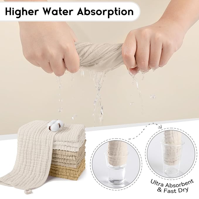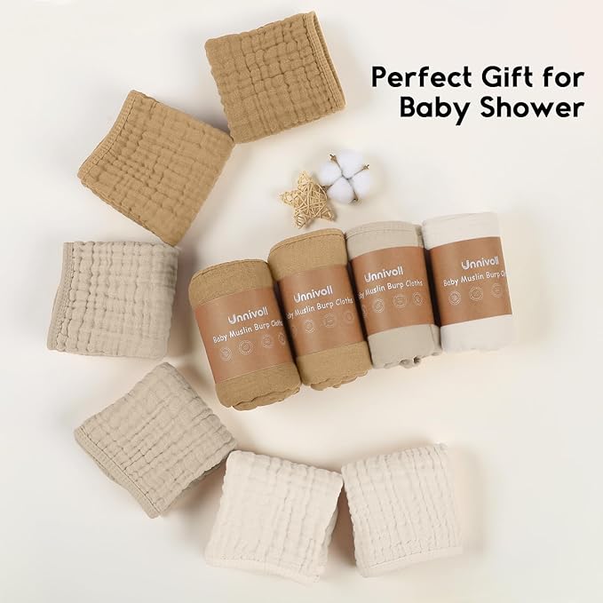 - Verstile Baby Essentials: Designed with a gender-neutral color, our muslin burp cloths will be a thoughtful present for any occasion like baby shower, baby registry, birthday, Christmas, or you can use it as burp rags, baby bibs, baby washcloths and towels, baby wipes, anything else that's available. A must-have for teething baby and mess no more.