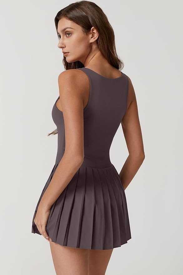 - Fashion-Forward Design: The QINSEN Womens Square Neck Tennis Dress features a stylish square neck, sleeveless design, and a I-shaped back complemented by a playful pleated skirt, making it the perfect blend of fashion and casual wear for active women.