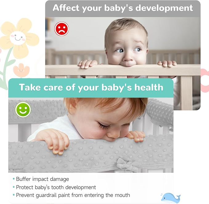 - 【Easy to Clean】: Our crib covers teething can be cleaned by just spraying and wiping. In addition, the edge protection strips of the guardrail can be washed and dried in the washing machine and dryer, making it easier to keep the crib guard bumper clean.