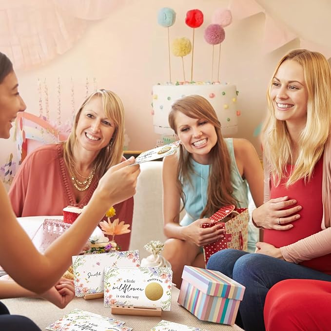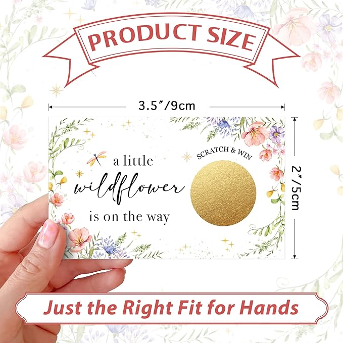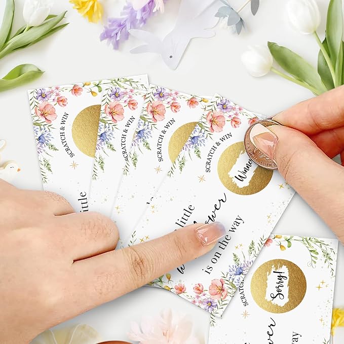 Baby Shower Game Scratch Off Cards Girl, A Little Wildflower is On The Way, Floral Printed Scratch Off Party, 50 Cards -c1