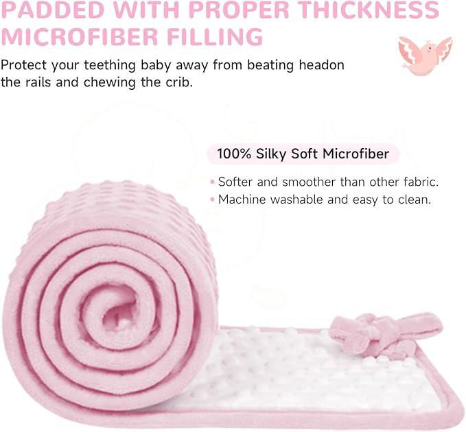 Plush Pink 3pcs New Teething Edge Crib Rail Cover&Corner Guard Coverage Straps,Reversible Guardrail Cover Protector for Boys Girls(1 Long 2 Short)