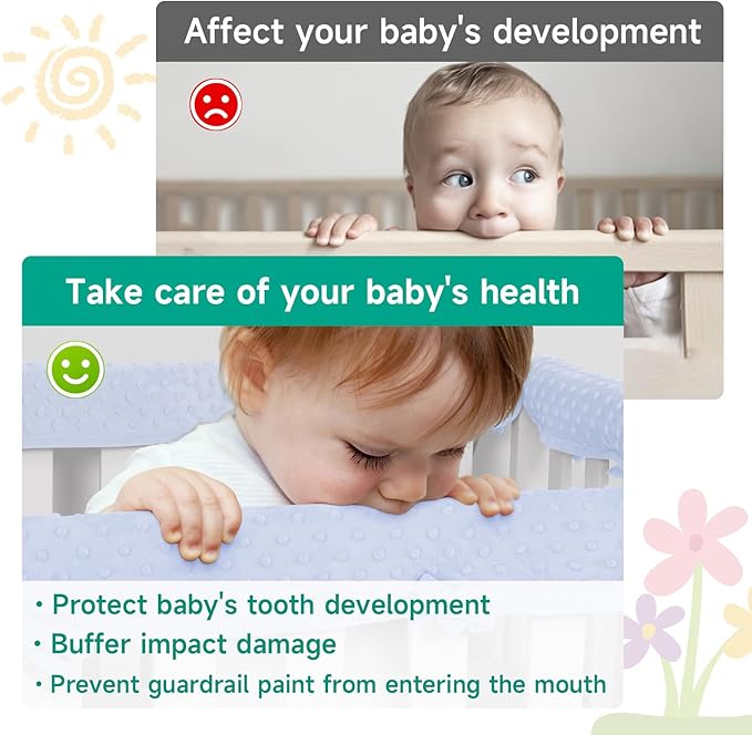 - 【Easy to Clean】: Our crib covers teething can be cleaned by just spraying and wiping. In addition, the edge protection strips of the guardrail can be washed and dried in the washing machine and dryer, making it easier to keep the crib guard bumper clean.