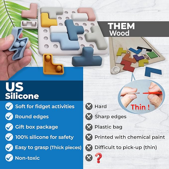 - [Sensory Toy] Soft silicone blocks and puzzle board offer tactile stimulation, hands-on sensory play and stress relief