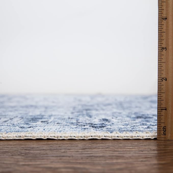 Bloom Rugs Washable Non-Slip 2' x 3' Rug - Ivory/Denim Blue Traditional Medallion Area Rug for Living Room, Bedroom, Dining Room, and Kitchen - Exact Size: 2' x 3'