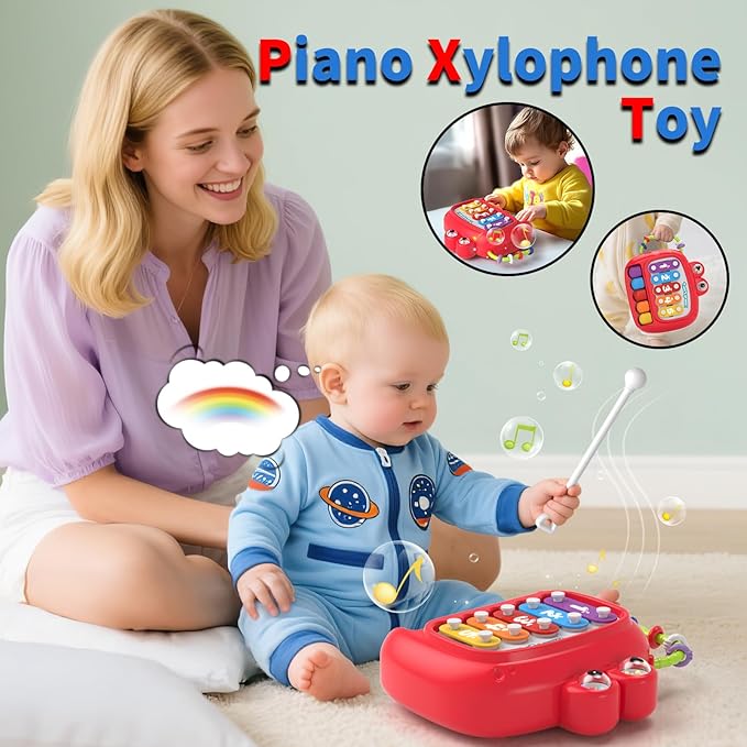 - [4 IN 1 Baby Learning Toys] Baby toys for 12-18 months set includes baby busy cube toys, stacking toys, pull string Infants toys, baby piano musical toys, various aspects of the child's color and shape recognition and classification ability, fine motor skills, hand-eye coordination, accompany the baby's happy growth.