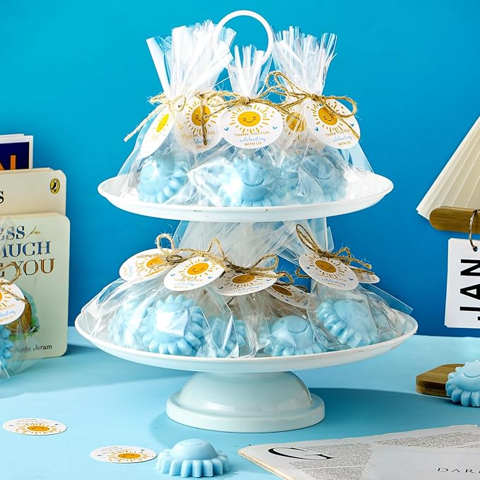 - Package Includes: there are 40 baby shower decorative soaps, and each soap comes individually wrapped with opp bags and tied with colored ribbon, easy for carrying and preservation, can be used as Sunshine Party, Here Comes the Son party or wedding favors, baby shower favors and other baby theme party favors
