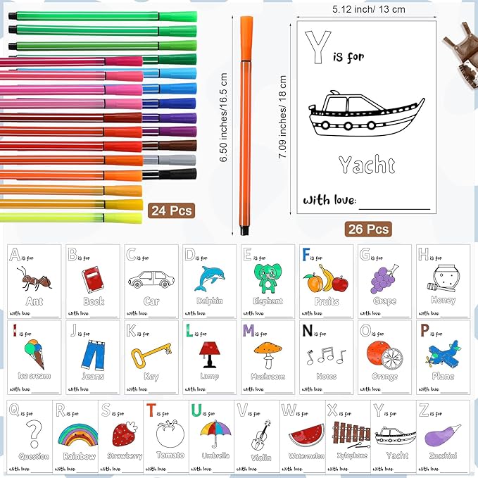 - Package Includes: you will receive 1 piece of wooden baby game sign, 26 pieces of baby shower coloring cards with alphabets from A to Z, and 24 pieces of coloring pencils, this set is complete and ample in quantity, can satisfy your baby's alphabet coloring needs