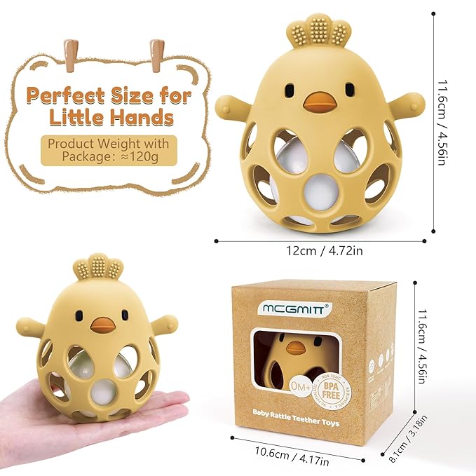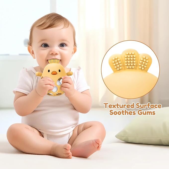 - 【Sensory Delight & Teething Relief】Our adorable chick-shaped teether is designed with textured surfaces and hollow design to soothe sore gums while stimulating baby's sensory development!