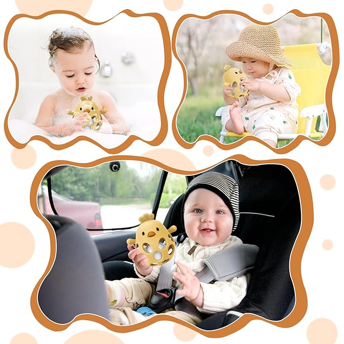 - 【Easy-to-Grab Design】The compact, lightweight design with rounded edges fits perfectly into tiny palms, promoting grasping and motor skills. Your baby will love shaking, squeezing, and exploring this adorable chick!