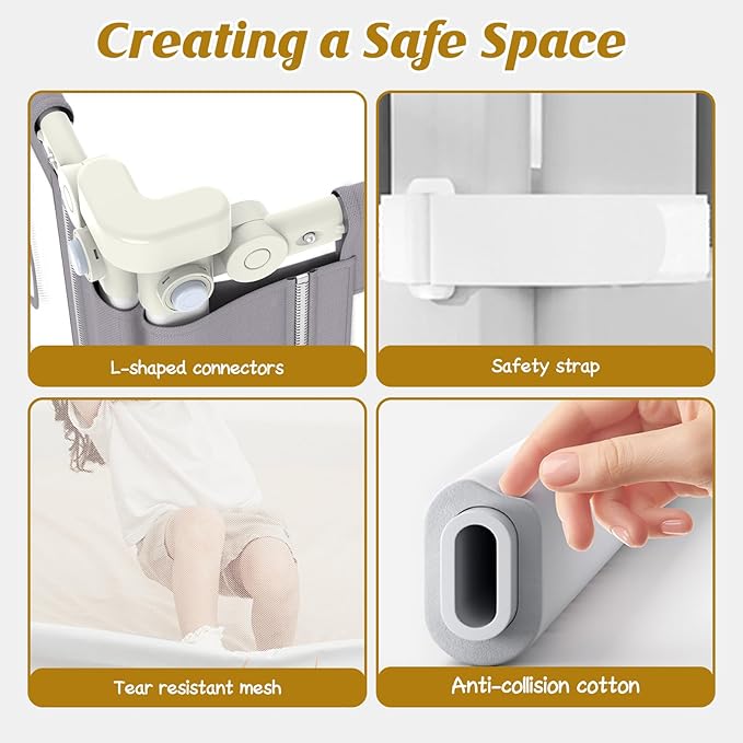 Height Adjustable Bed Rail for Toddlers, Kids Safety Baby Bed Rail for Twin/Full/King/Queen Size Bed (3 Sides, 74 * 74 * 54 Inch)