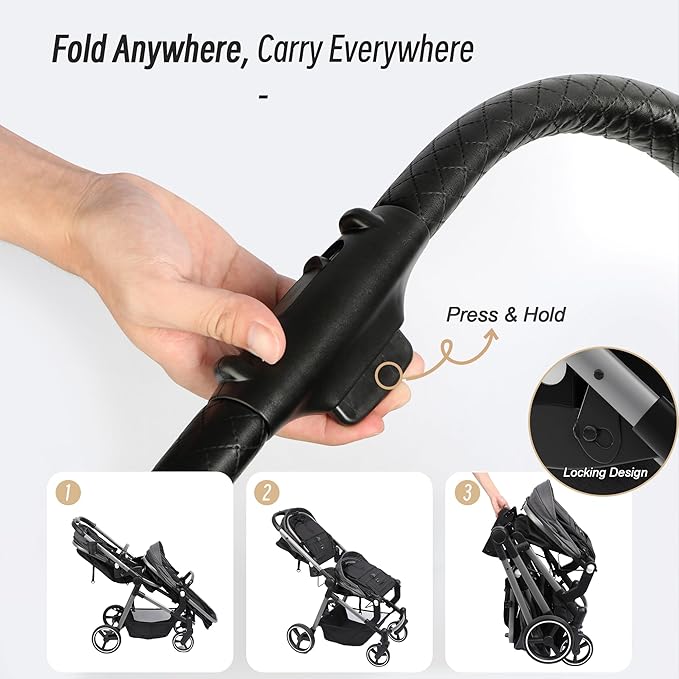 - Quick One-Hand Fold & Safety-First Design: Simplify your life with the easy one-hand fold, making storage and transport effortless. The stroller’s shock-absorbing front wheels and linked rear brake system ensure a smooth, secure ride. The 5-point safety harness keeps your baby snug and safe, while the ergonomic design ensures comfort during every outing.