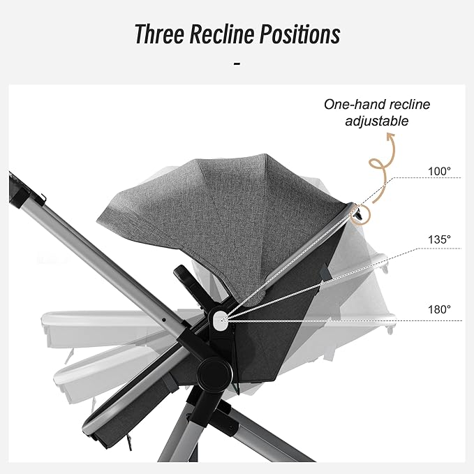 - Adaptable Positioning: The reversible seat offers customizable comfort for your little one. Opt for the parent-facing position for bonding moments, or switch to the forward-facing mode to transform the stroller into a high landscape view, allowing your baby to take in the surroundings while staying safely away from car exhaust.