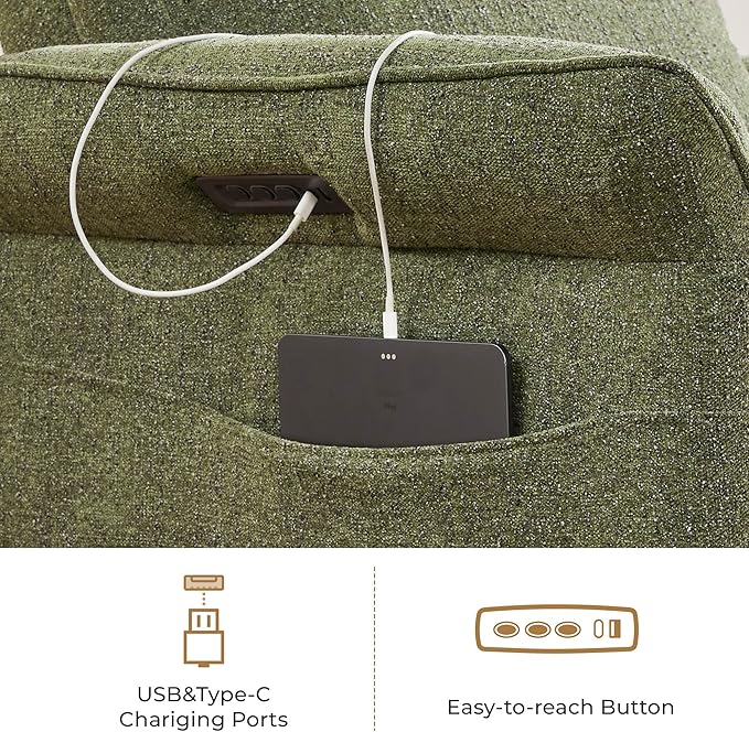 - Designed for Comfort & Care: This power glider transforms nursing, lounging, or napping into moments of ease. The outward-turned armrests create a snug, supportive space for breastfeeding or cradling your baby. Raise the padded footrest without reclining to elevate legs for pressure-free TV time. Independent power headrest and lumbar adjustments cradle your head, neck, and waist, alleviating spinal strain and easing lower back tension during extended sitting.