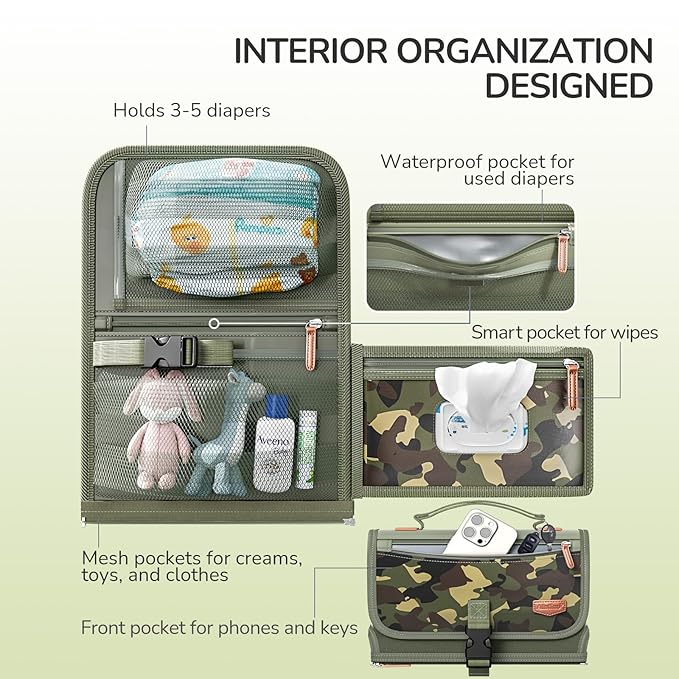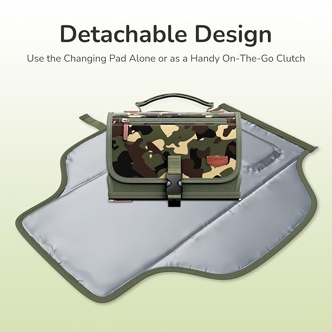 Portable Diaper Changing Pad for Baby, Detachable Travel Changing Pad with Baby Wipes Pocket, Gifts for Baby Shower, Newborn Girls and Boys (Green Camo)