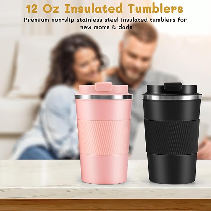- Durable & Anti Slip Tumblers for Mom and Dad: Crafted from high-quality stainless steel, double-wall soft non-slip design, these 12oz tumblers are designed for everyday use at home or on the go. A practical and meaningful gift idea for gender reveal parties, pregnancy celebrations, or new parents