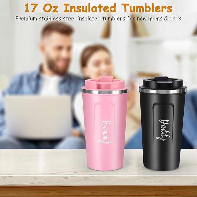 - 【Durable & Stylish Tumblers for Mom and Dad】Crafted from high-quality stainless steel, these 17oz tumblers are designed for everyday use at home or on the go. Their double-wall design helps maintain beverage temperature for hours. A practical and meaningful gift idea for gender reveal parties, pregnancy celebrations, or new parents