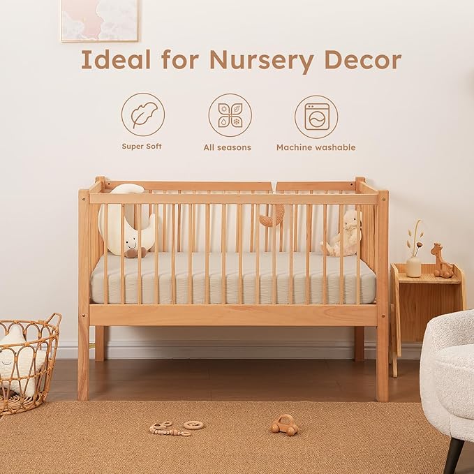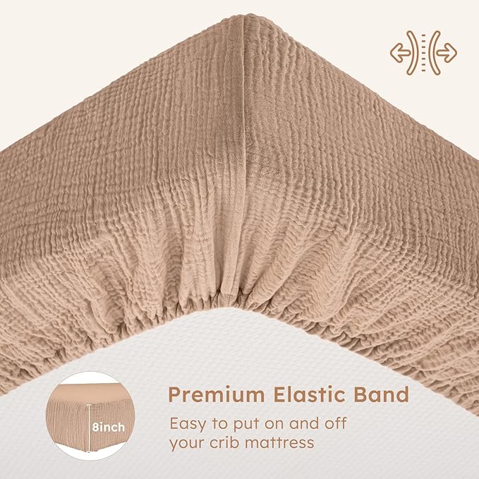 - Perfect Fit: Featuring a 360Β° all-inclusive design with a high-elastic elastic band, which ensures our muslin crib sheets stay flat and non-slip without displacement. Measures 52''X 28'', our standard crib sheets can snugly fit most standard crib and toddler mattresses up to 9'' thick, creating a comfy and safe sleep for your little one.