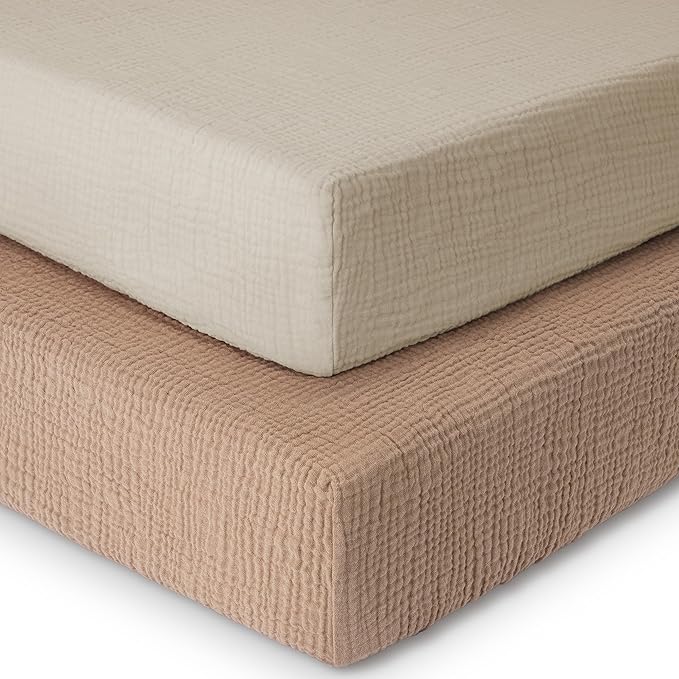 - 2-Pack Neutral Design: We offer a variety of options, these neutral crib sheets can easily match your nursery room in different styles, creating a comfortable and inviting space for your baby. The 2-pack muslin crib sheets are also convenient for regular washing and changing, ensuring your baby's bedding stays fresh and clean.
