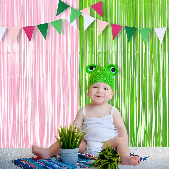 - The foil tinsel curtains are good for adding sparkle atmosphere as decorations for parties,girl birthdays party decorations, wizard theme decorations, baby shower, photos booths, pink and green decorations.