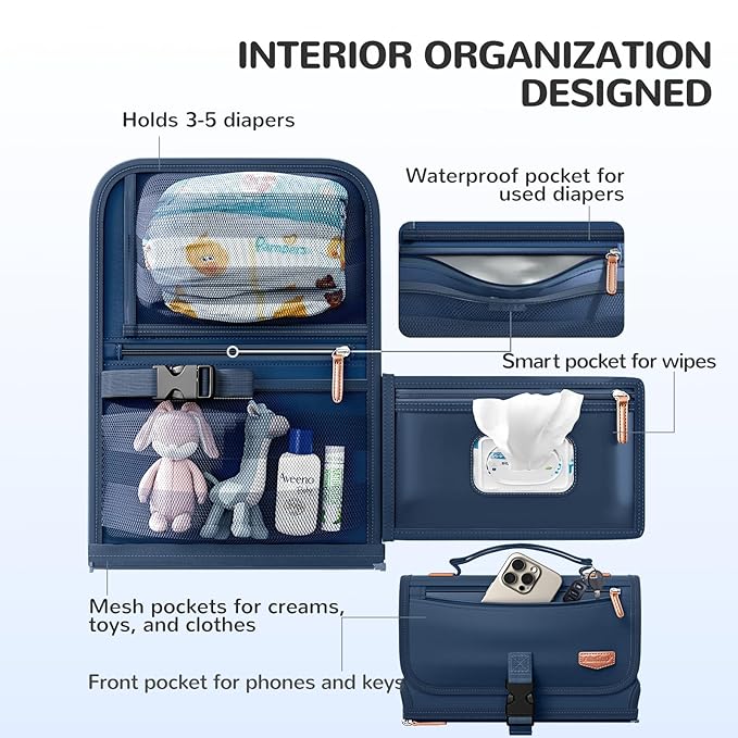 Portable Diaper Changing Pad with Shoulder Strap, Detachable Travel Changing Pad with Baby Wipes Pocket, Gifts for Baby Shower, Newborn Girls and Boys (Royal Blue)