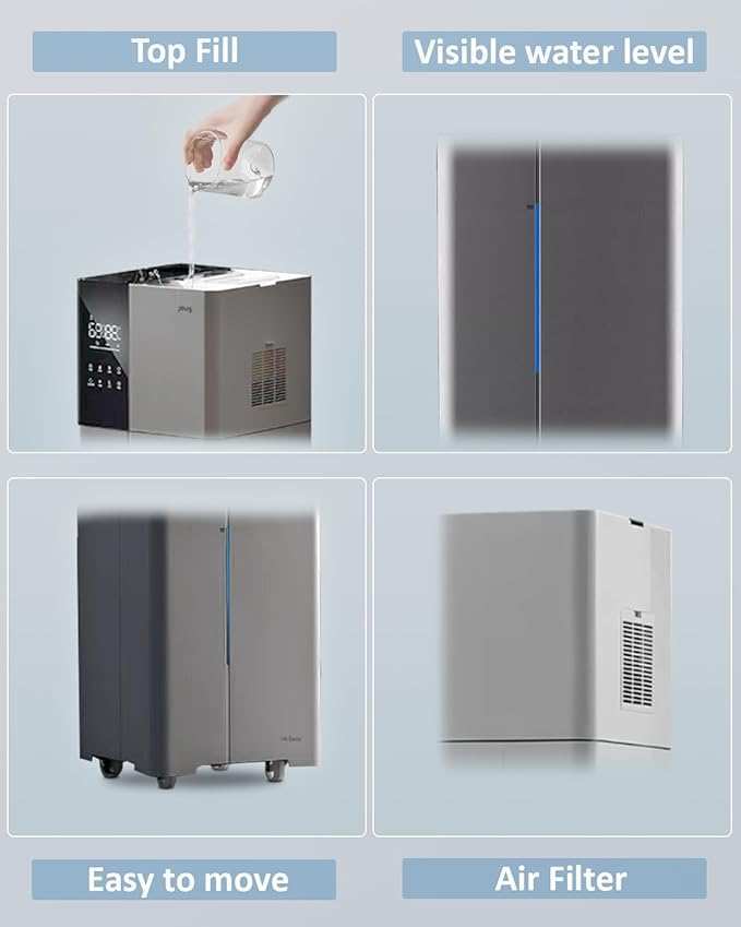 - 【Easy to Clean & Remote/Touch Control】Easy Clean Humidifier can be controlled either by a remote control or by touch buttons. The wide-opening water tank makes refilling effortless and spill-free and also allows for easy access to thoroughly clean the empty tank with a wet cloth. Our whole home humidifier comes with 30-day free replacement and 1-year warranty for added peace of mind. Tips: we recommend using distilled or purified water. If hard water is used, the water pump may become clogged. Please contact us for a replacement pump.