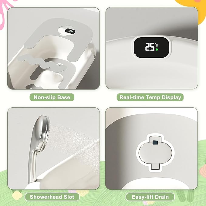 - Premium Safety Materials : Crafted from high-quality materials, this baby bathtub features odorless, non-toxic construction for delicate skin.