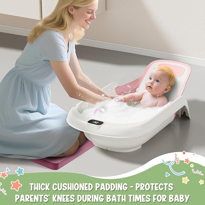 Reclining Baby Bathtub for Newborn, Angle Adjustable Baby Tub for Infant to Toddler, Bath Support in Tub, Thermometer & Bath Kneeler Rest Pad & Clean Rinse Cup, 6-36 Months-Pink
