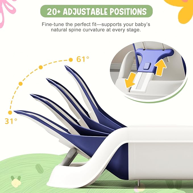- Multiple Adjustable Recline Positions : Customize the perfect bathing angle in this baby bathtub for newborn for your baby's comfort and safety, from newborn lounging to toddler splashing!