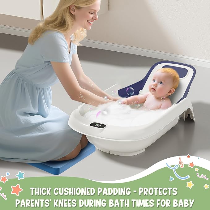 Reclining Baby Bathtub for Newborn, Angle Adjustable Baby Tub for Infant to Toddler, Bath Support in Tub, Thermometer & Bath Kneeler Rest Pad & Clean Rinse Cup, 6-36 Months-Blue