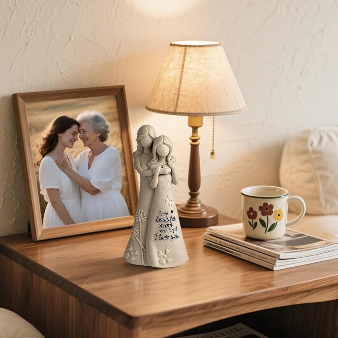 - Gifts for Mom Birthday : This unique mom daughter statue is an extraordinarily wonderful gifts, the dress was engraved with the words : "To my beautiful mom never forget I love you". Perfect for showing your love and appreciation for your mom. I think it's a great meaningful gift idea for mom.