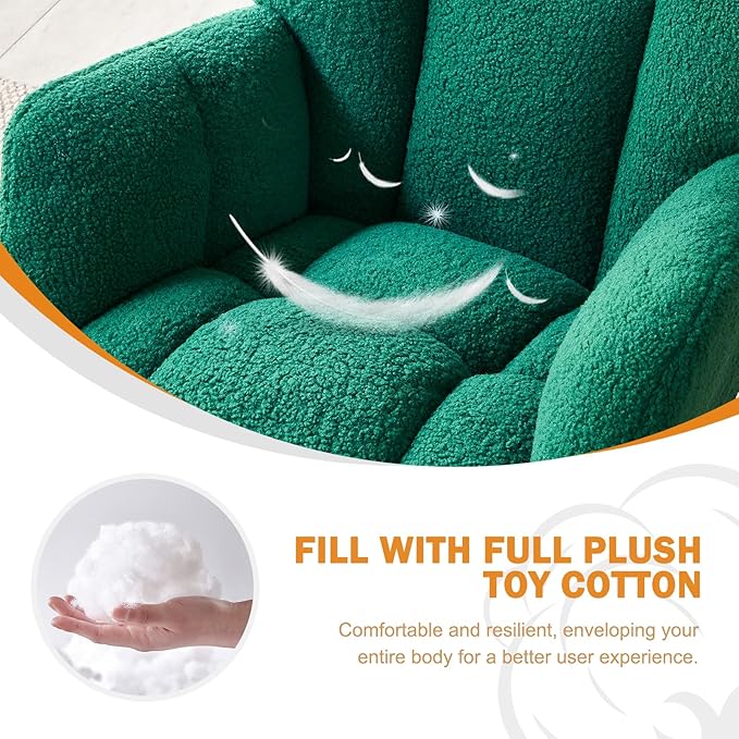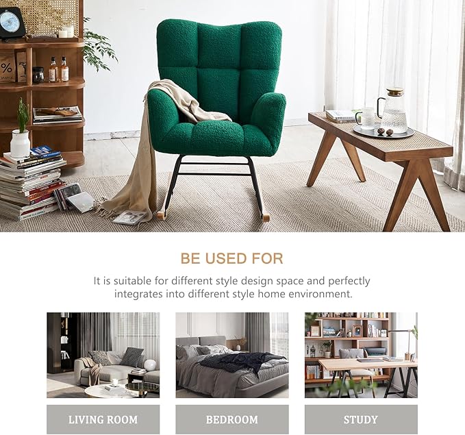Kiztir Rocking Chair Nursery, High Backrest Teddy Glider Rocker Upholstered Rocker Recliner Modern Rocking Accent Chairs for Bedroom, Living Room, Offices (Green)