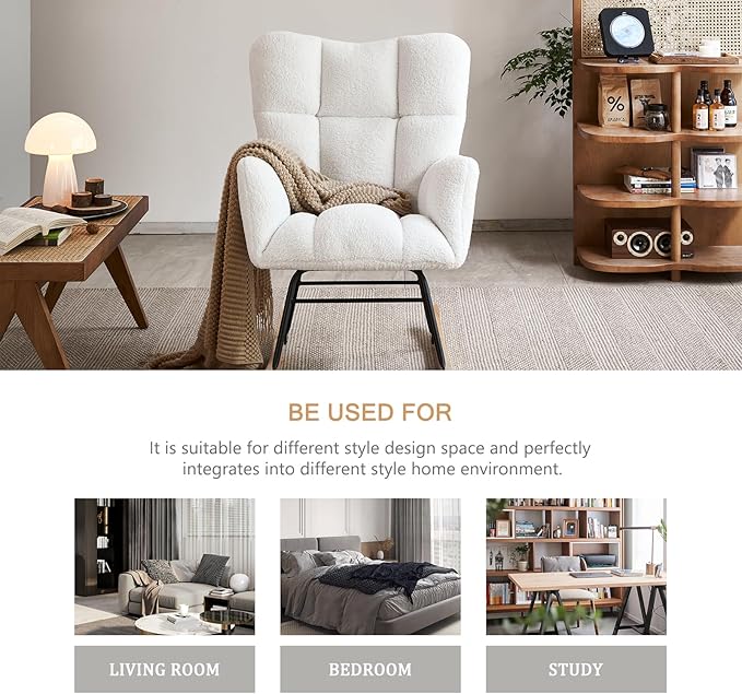 - Soft and Comfy Seating: The surface of the rocking chair for adults is made of high quality teddy bear fabric, which is gentle on the skin, comfortable and soft. Thickened sponge cushion, soft and flexible, not easy to collapse. It will be your best partner to relax after a tiring work.