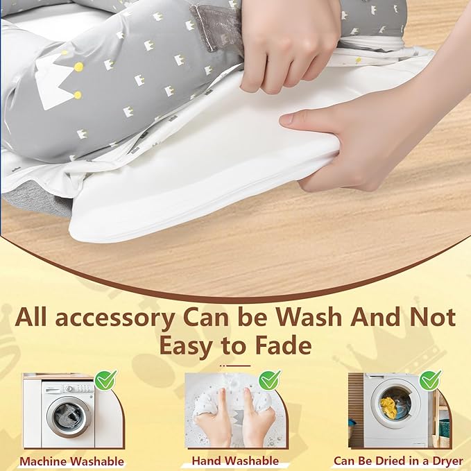 - Safe & Snug Baby Lounger for 0-24 Months: Our infant lounger features breathable pure cotton with adorable prints (Crown/Dinosaur/Cloud/Car) and 3D polyester as the filling's materia. It keeps baby cool during summer & snug in winter – all while supporting healthy hip development.