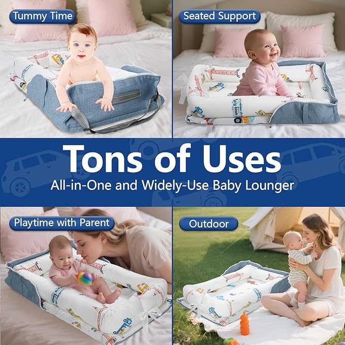 - Effortless Cleaning: The baby lounger features a convenient zipper design. Simply remove the printed cotton cover for easy machine washing. Stain-resistant fabric handles everyday accidents like spit-ups, milk spills, and snack messes. Resists shrinking and fading.
