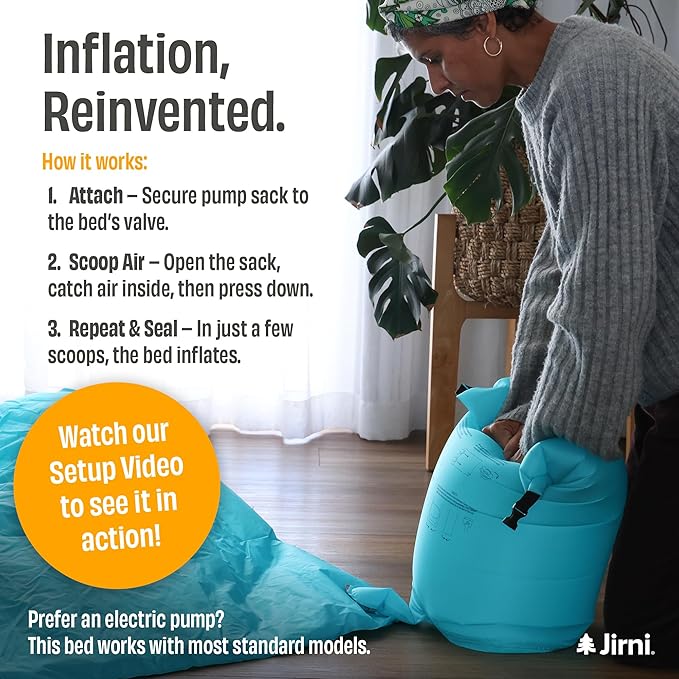 - Innovative Inflation, No Power Needed – Our exclusive pump-sack design makes setup stress-free. This travel toddler bed inflates in minutes with minimal effort — no noisy pumps, no batteries, no outlets required. A smarter way to enjoy a toddler blow up mattress or kids travel bed anywhere.